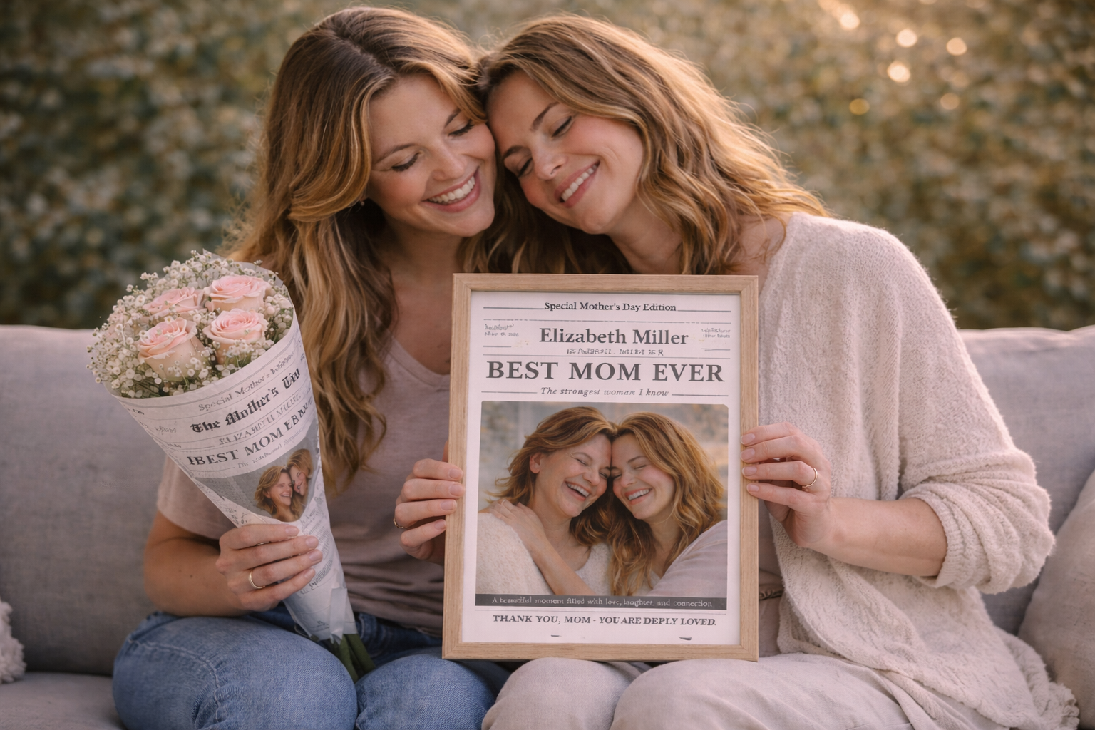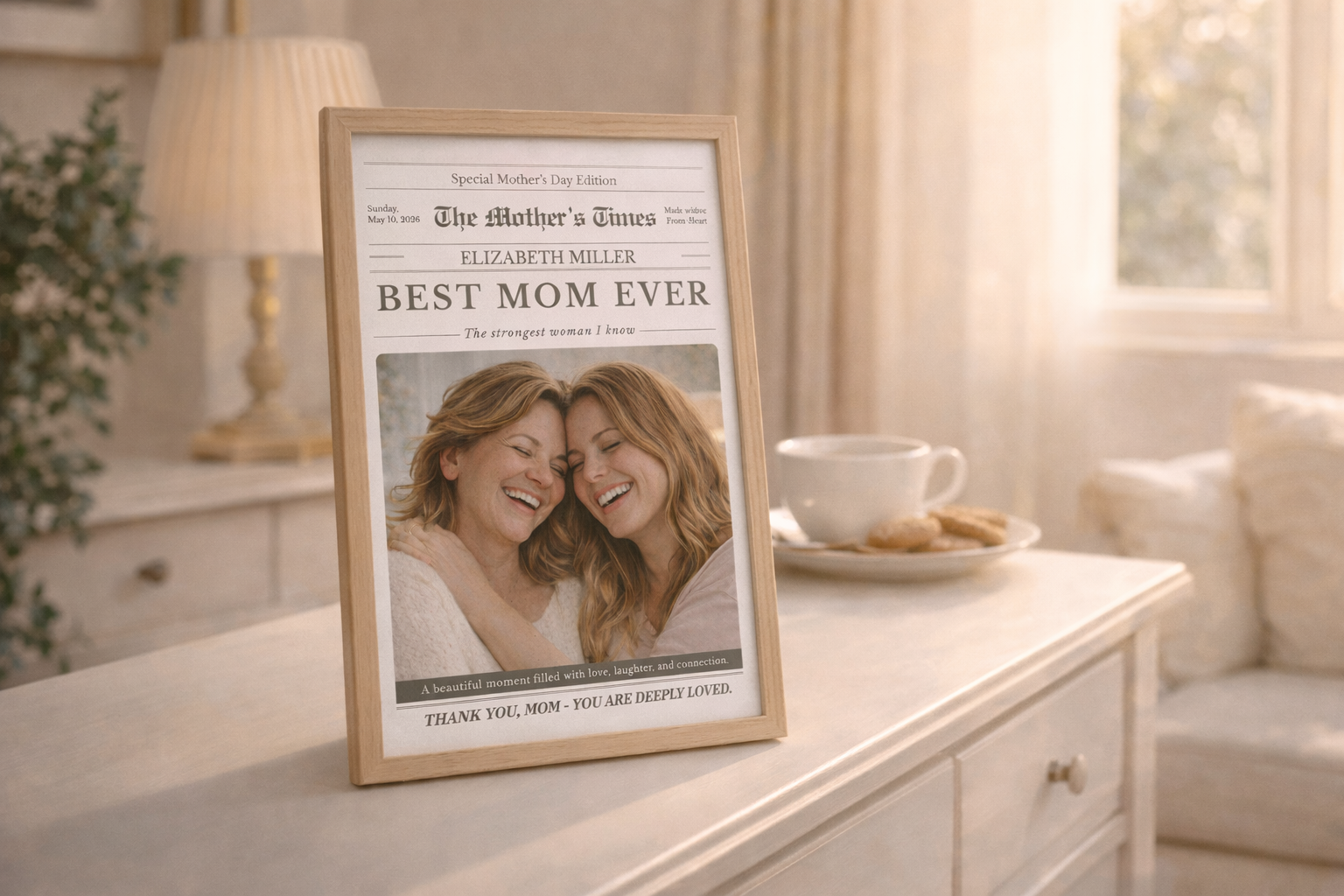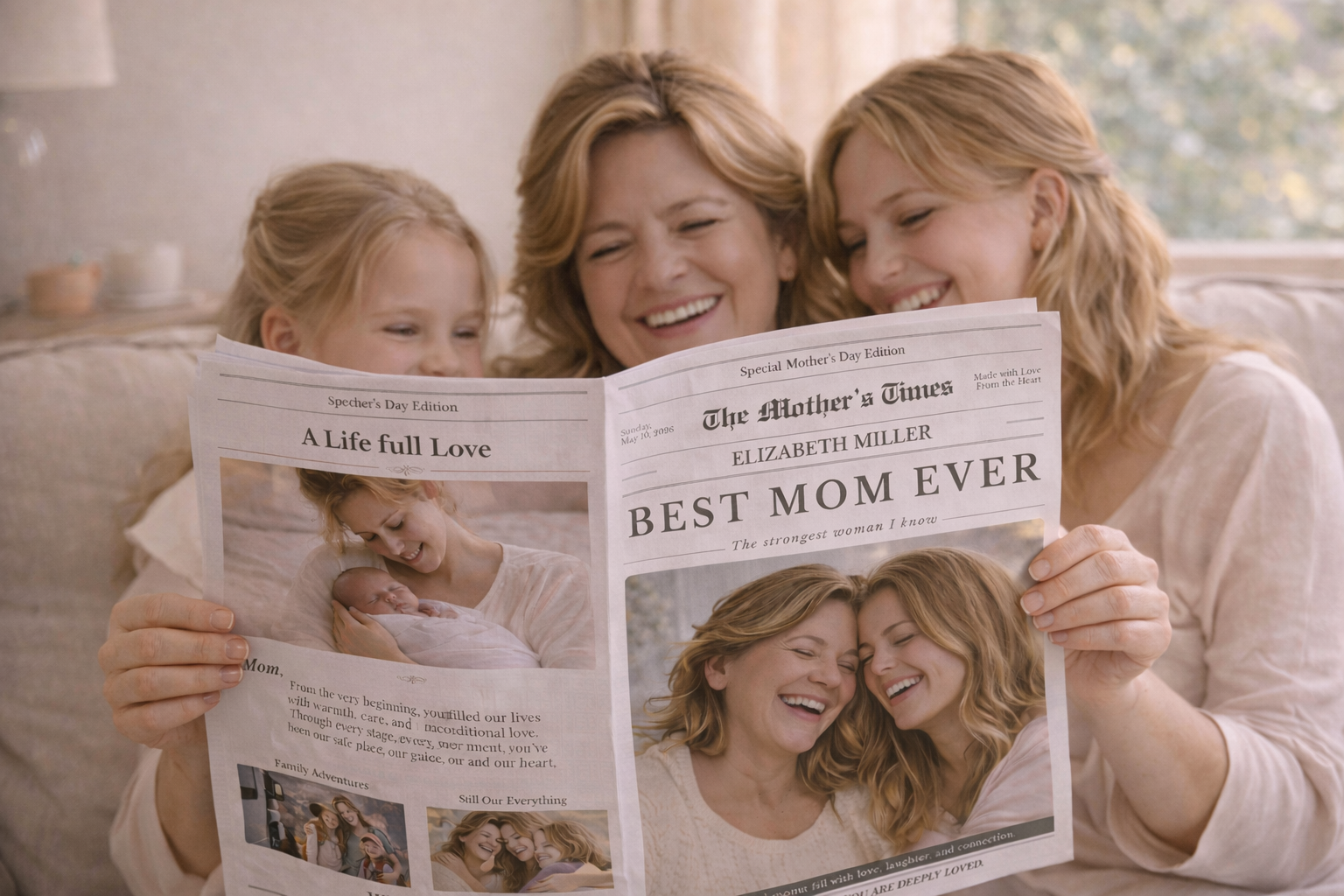 See muudetav emadepäeva ajalehe kujundus võimaldab sul luua täiesti isikupärase kingituse, kuhu saad lisada fotod, lood ja armsad sõnumid.